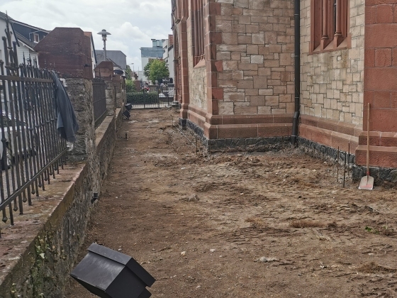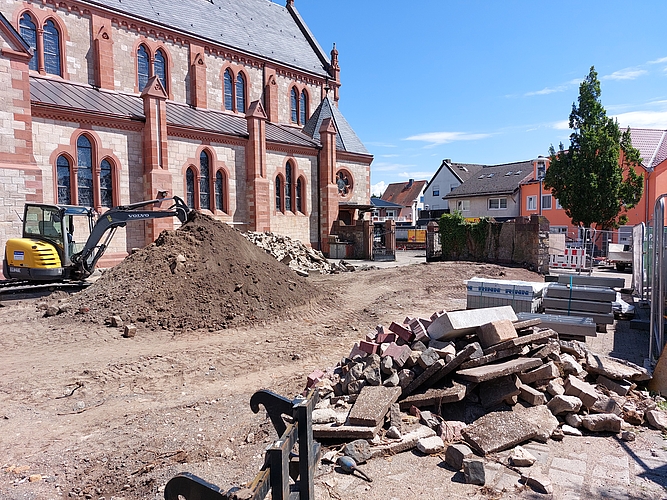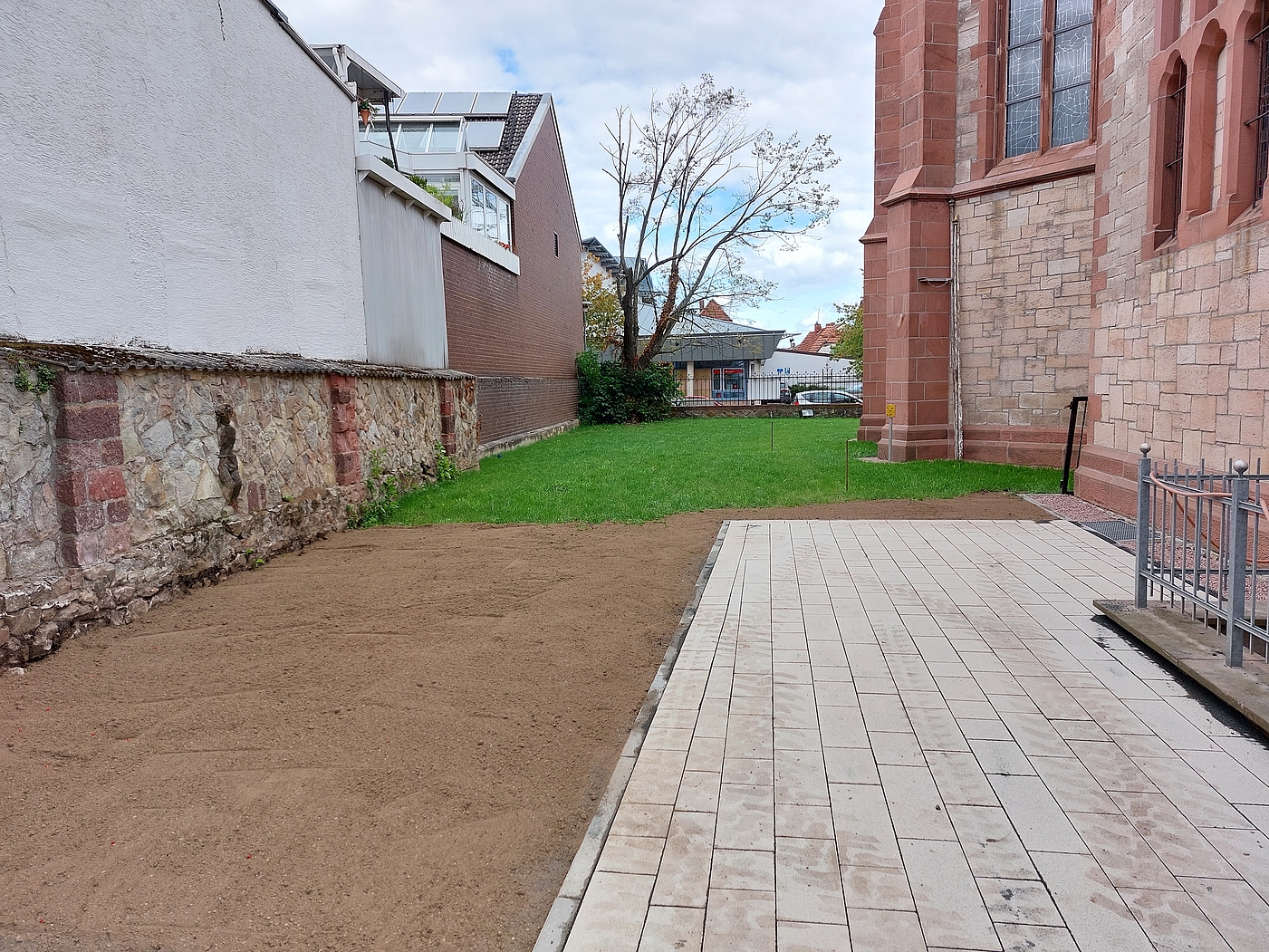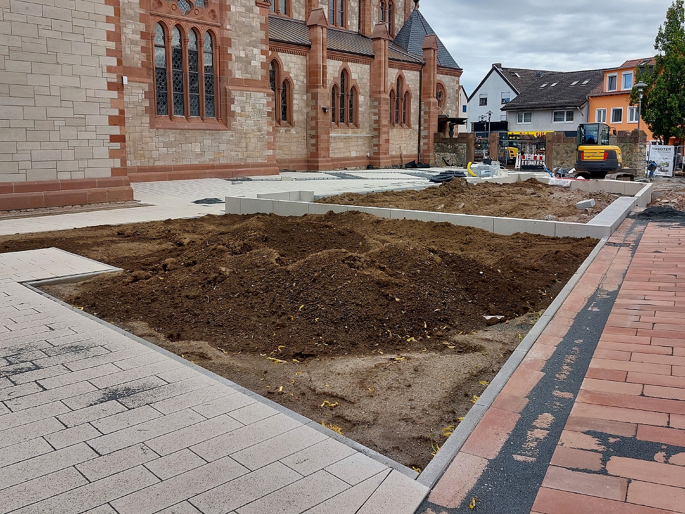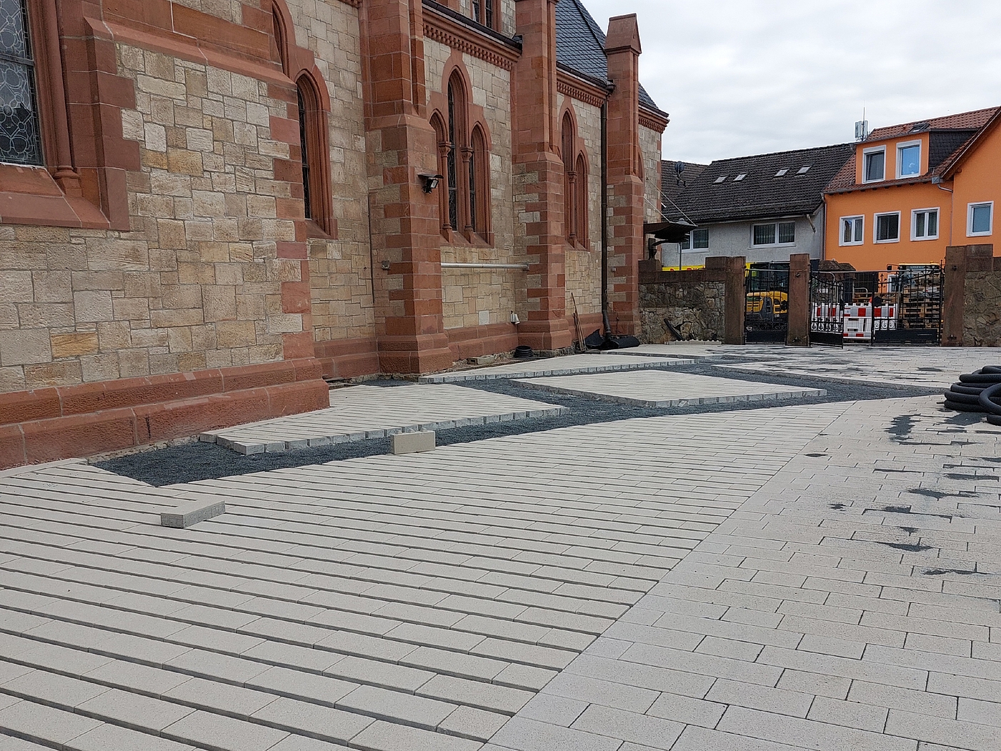 Zu beachten ist dabei, dass es sich bei dem Grundstück der Pfarrkirche St. Nazarius um ein Bodendenkmal handelt und die neugotische Kirche als Einzeldenkmal geführt wird. Für die Umgestaltung der Freiflächen war daher eine denkmalschutzrechtliche Genehmigung einzuholen.